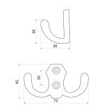 Крючок-вешалка двухрожковый. Материал - цинковый сплав. Крепеж в комплекте.