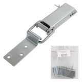 Замок 1-1 ГОСТ 16561-76 - применяется в качестве фурнитуры для металлических или деревянных ящиков. Замок продается комплектом: сам замок, ответная часть и запирающая шпилька. Имеет цинковое - антикороззионное покрытие. В замке предусмотренно отверстие для шпильки, чтобы избежать открытие замка при транспортировке.